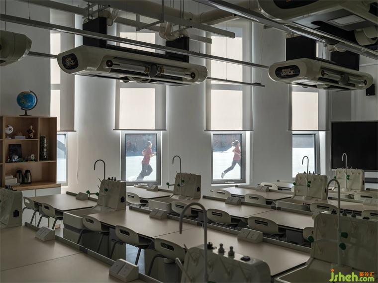 教室空間的設(shè)計以“適于學(xué)生開展各種能動、自主的學(xué)習(xí)活動、少教多學(xué)”為主要目標(biāo),倉庫打開條形窗后,燈光與自然天光照進教室,這在高密度的都市校舍中顯得格外珍貴。