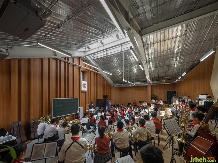 學(xué)校裝修設(shè)計盡管在老城區(qū)教學(xué)面積受到束縛,但因老建筑與生俱來的歷史文脈,給予了學(xué)校某種教學(xué)空間的“靈氣”,去祝福孩子們。改造后的校舍無處不在地傳遞著教育的溫度?;谡凉蓪W(xué)校的辦學(xué)理念和文化氣質(zhì),空間集約高效、彈性復(fù)合、開放共享的同時以潤物無聲的方式傳達著這所“神秘學(xué)?!钡莫毺伧攘?。