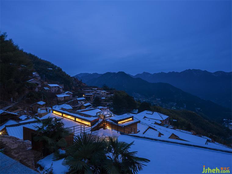 十鐘山房隱于郁郁蒼蒼的半山腰,夜晚俯瞰,通體透亮。
