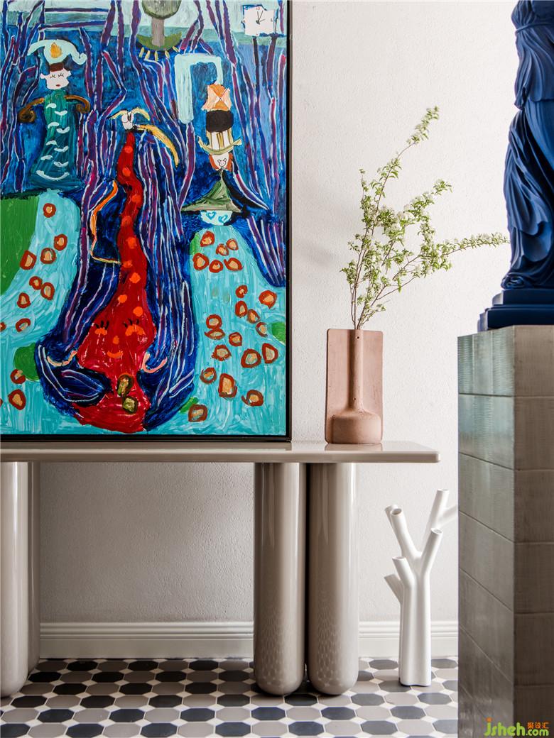 門廳的地面鋪貼了手工瓷磚,搭配勝利女神雕像,充滿古希臘浪漫爵士風(fēng)。裝修公司