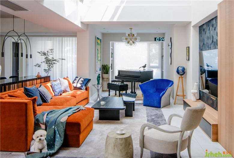 人短暫停留的樓梯間處于整個房子采光最好的地方,我們將原來樓梯間的位置改造成了客廳,并將天窗繼續(xù)開大,充分引入光,照在暖橘色的沙發(fā)上,整個客廳是明亮且溫暖的,讓人想要長時間停留。裝修公司