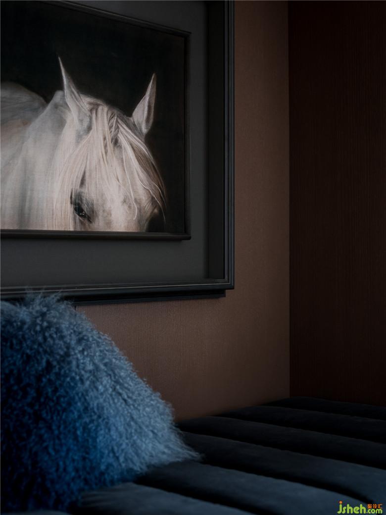 對我而言,好的室內(nèi)裝飾意味著,你一走進去就能看到并感受到屋主的個性,一些能夠喚起點滴生活回憶的物件;墻上的掛畫是業(yè)主的女兒曾經(jīng)的畫作,色彩非常驚艷,我特地以這幅畫為原型去定做了大尺寸的手工織毯。