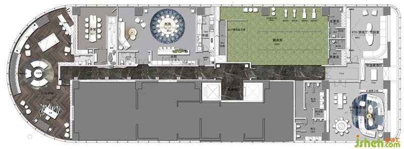 在東方的語境中,空間是流動(dòng)的,而非絕對(duì)功能劃分的。故在項(xiàng)目層高僅2.5米限定的條件下,我們反復(fù)進(jìn)行空間動(dòng)線結(jié)構(gòu)的梳理和重組,在確保滿足功能與視線提升之余,對(duì)空間場(chǎng)景進(jìn)行設(shè)計(jì)構(gòu)建,并以左側(cè)重體驗(yàn)互動(dòng)的包房、茶室、行政酒廊和右側(cè)重配套休閑的健身房、雪茄室及VIP包房逐幀打造會(huì)所空間特定的行為和情感。