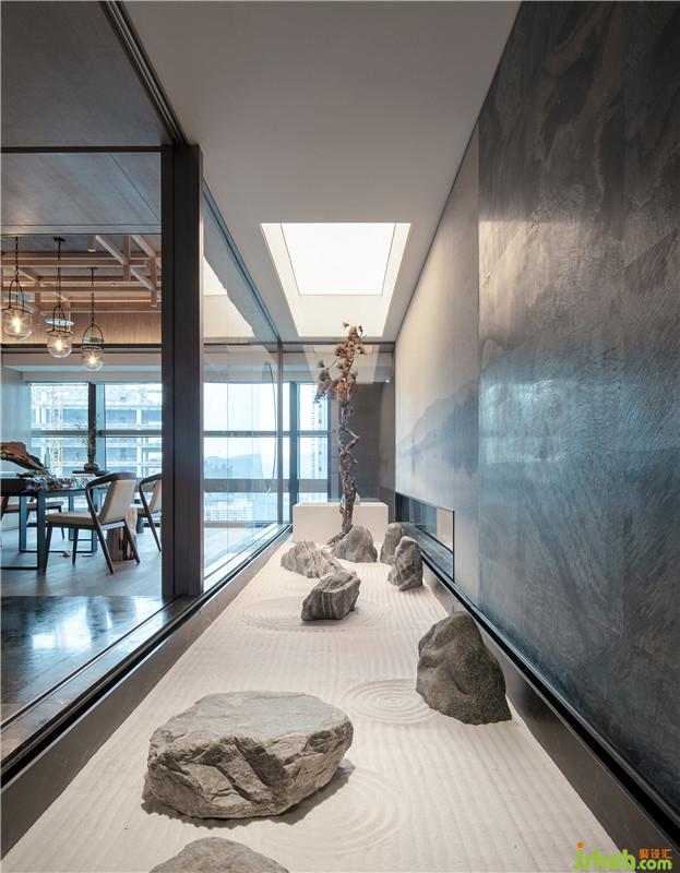 為營(yíng)造韻味與舒適的氛圍,打造賓主開(kāi)懷暢飲、相聚甚歡的場(chǎng)景體驗(yàn),包房空間布局在滿足數(shù)十人貴賓就餐及洽談接待的同時(shí)亦與休閑淺坐、水吧、茶室等功能做了動(dòng)線的聯(lián)動(dòng)設(shè)計(jì)。其間細(xì)致入微的對(duì)稱美感,質(zhì)感沉厚的現(xiàn)代家具,粗狂石材與纖薄層板間的肌理碰撞,行構(gòu)出冷靜非凡的氣質(zhì),包裹出低奢內(nèi)斂的高貴品質(zhì)。