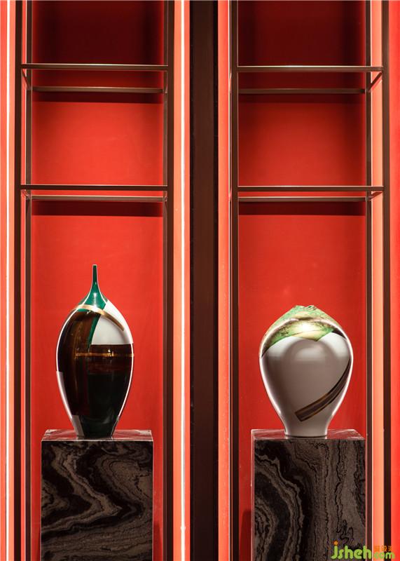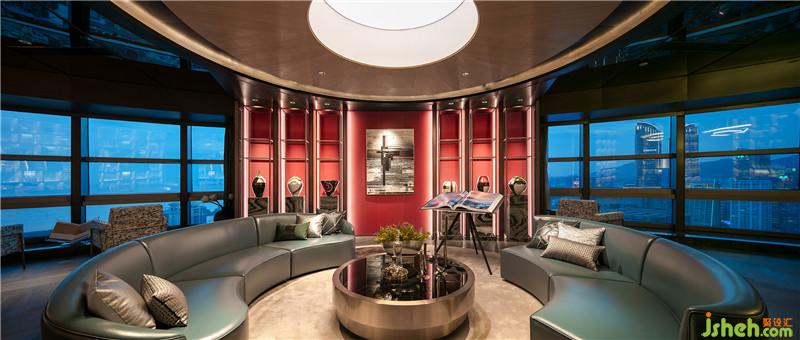 在這個(gè)項(xiàng)目的設(shè)計(jì)中,我們一直在尋求不被形式所界定的風(fēng)格。同時(shí),我們也認(rèn)為對(duì)于高凈值人群而言,獲得身份認(rèn)同感與精神歸屬感的體驗(yàn)互動(dòng)才是精準(zhǔn)化營(yíng)銷。故在集商務(wù)、閱讀、娛樂(lè)與休閑功能為一體的行政酒廊區(qū)域,我們以圖書(shū)室為主題概念,特設(shè)閱讀墻來(lái)展現(xiàn)企業(yè)和企業(yè)家精神層面的內(nèi)涵力量,打造思想交流與碰撞的理想地。同時(shí)天花以灰鏡做頂,在高度有限的空間里以達(dá)視覺(jué)通高效果,加深空間體驗(yàn)感。紅色背景墻的植入,是熱情承載別有風(fēng)致的現(xiàn)代美學(xué)意涵,而休閑區(qū)里可自由組合的圓形沙發(fā),則給予空間更多的可能性。設(shè)計(jì)公司