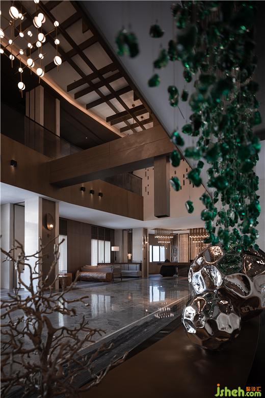 幸得泰興古城的和水風光蔭庇,本案以富有當地舟船特色的造型作為初入門廳的主題設計方向。水療設計門廳的整體框架仿照了船艙內的木質結構、以橫縱骨架為梁,迎賓處一楫悠然小船,搭配松枝、碧玉、水滴的自然元素,將自然氣韻融合現代的設計手法,勾勒出靜水深流的氛圍。