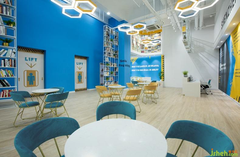 從入口進(jìn)入之后,左手邊是一個(gè)階梯式的共享書(shū)吧,也是我們平時(shí)拿來(lái)做小型的沙龍課程而設(shè)計(jì)的,創(chuàng)辦共享書(shū)吧的目的就是來(lái)滿(mǎn)足和激活更多學(xué)員的閱讀需求?!耙驎?shū)相遇,成為朋友,”,公益書(shū)吧,以媒介和熏陶的橋梁作用,讓更多的人愛(ài)上閱讀,開(kāi)放式的階梯閱讀空間,打造全新的閱讀體驗(yàn),為了凸顯學(xué)校獨(dú)特的文化特質(zhì),我們也在整個(gè)空間,融入了“書(shū)”的元素,充分強(qiáng)調(diào)了我們學(xué)校的文化氣息跟整體形象。室內(nèi)設(shè)計(jì)師