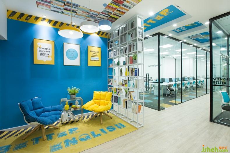 進(jìn)入大廳,首先有服務(wù)視野良好的休閑區(qū),在這里學(xué)員可以得到服務(wù)和諮詢(xún),在家具的選擇上我們都是采用較低的人體尺度,這也彰顯出了我們的品牌對(duì)大眾群體的人性化照顧。藍(lán)色和黃色的家具,與背景,天花的色彩緊密的結(jié)合在一起。 整體的色彩我們只用了黃色跟藍(lán)色,做為導(dǎo)視系統(tǒng)的色彩也是緊密?chē)@著我們的企業(yè)的文化和風(fēng)格來(lái)定位的,它可以直接影響到人們的意識(shí)和感覺(jué),對(duì)人的情緒和品牌的傳播有著重要作用。室內(nèi)設(shè)計(jì)師