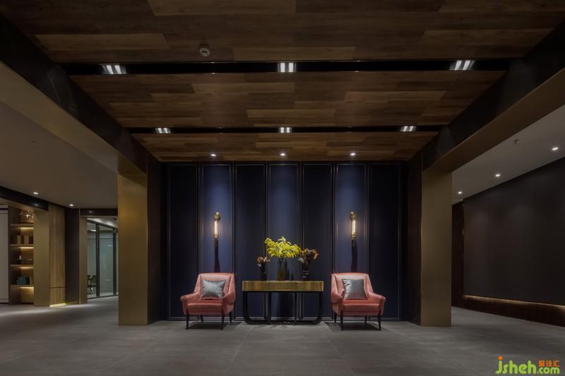 美式會所位于建筑的中軸,室內(nèi)設(shè)計師希望會所是體驗產(chǎn)品形象的核心之地。步入式玄關(guān)、會客廳、酒吧、燭光餐廳、壁爐一系列充滿儀式感的設(shè)計意像無不讓顧客動容。愉悅交談的客人老友落座于此,配上威士忌和黑膠唱片的質(zhì)感音色,便是優(yōu)雅熙攘的感受。