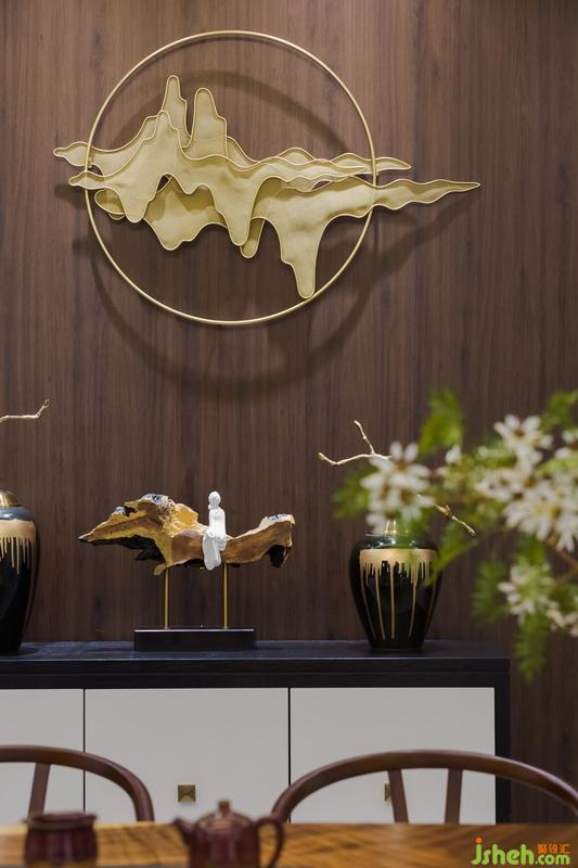 《園冶》中提到,“雖由人作,宛自天開”。我們遵循自然美學,營造精神境界,創(chuàng)造出一種將空間與自然結合的體驗。新中式空間分為閱讀區(qū)與茶區(qū),室內(nèi)設計師提煉傳統(tǒng)元素,結合板材產(chǎn)品特質(zhì),在空間中進行了隱性表達。