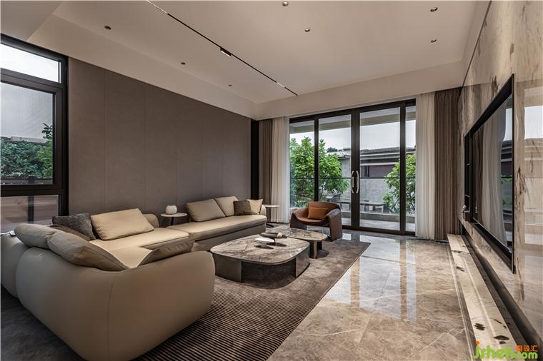 佛山保利云上別墅裝修設(shè)計建筑四周園藝環(huán)繞,并沿道路坡度而下,形成獨特的下沉花園式建筑,負一層與一層是錯層的關(guān)系,因此對穿透兩層花園的樓梯改造顯得尤為重要。設(shè)計師結(jié)合了周邊環(huán)境的特點,重新劃分了空間動線,模糊一層與負一層的建筑關(guān)系,經(jīng)過局部的改善優(yōu)化,使建筑空間顯得更為合理和靈動。