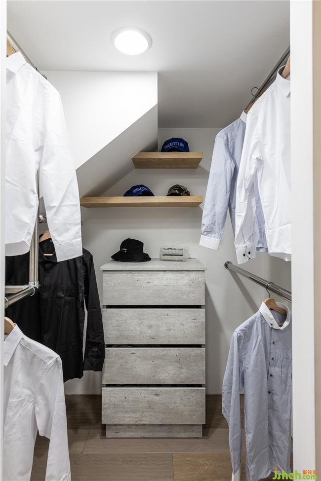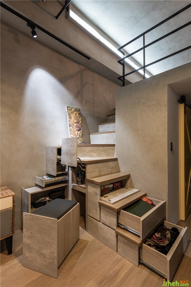 深淺跳色的文化石墻是空間的訴說,輔清水模電視墻,率性的氛圍充盈空氣中;調(diào)性一致的廚房不銹鋼臺面、黑色電器架,完整了空間的韻味;興趣即生活的沖浪板、吉他,是空間性格的亮點,讓人在此能放松自我;更衣室為屋主生活樣貌的體現(xiàn),在此能隨意調(diào)整自己成為理想的樣子,構(gòu)筑了男女屋主的憧憬及理想的生活。裝修公司