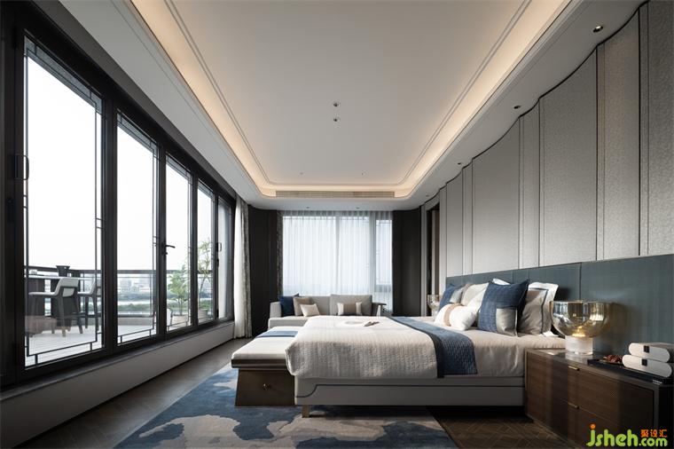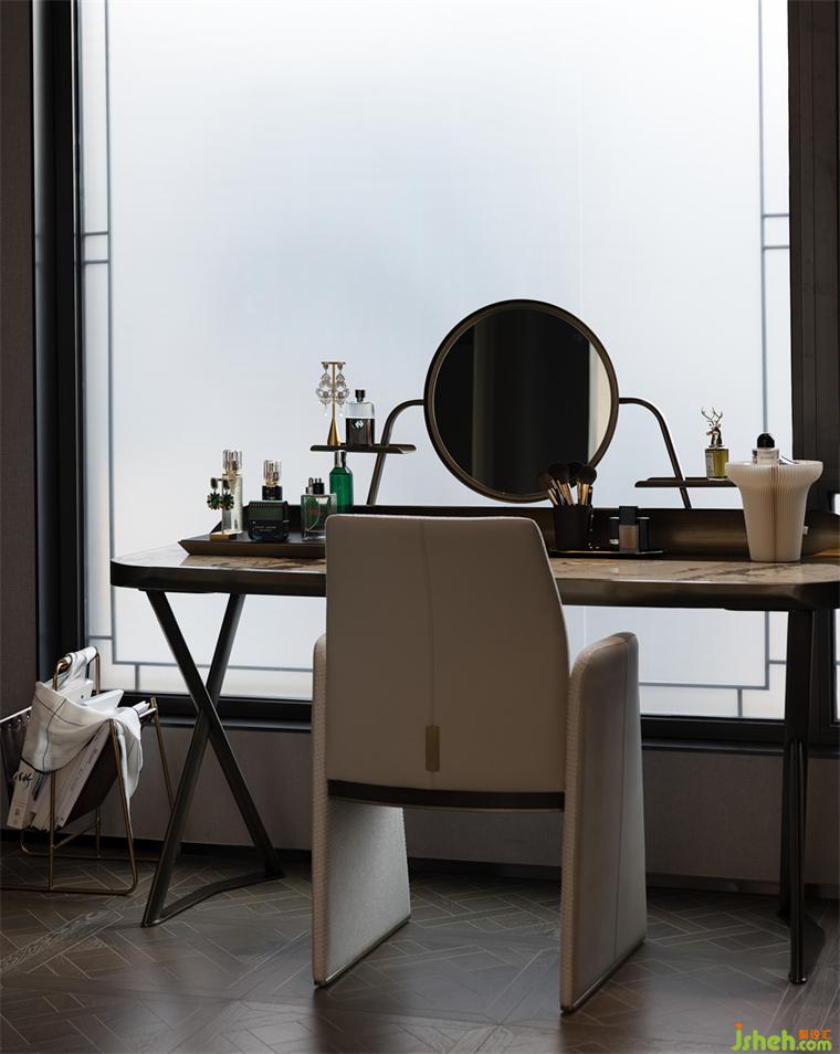 步入二層的主臥空間設(shè)計(jì)彰顯居住者本人的精神追求。在滿足功能與舒適中盡可能的放大空間尺度及視覺感受。在延續(xù)整體風(fēng)格的基調(diào)之上,融合不同顏色深淺、材質(zhì)、肌理,柔軟的床品與地毯等顯示漸進(jìn)的層級(jí)關(guān)系,高級(jí)又帶給人內(nèi)心的寧靜安定。
