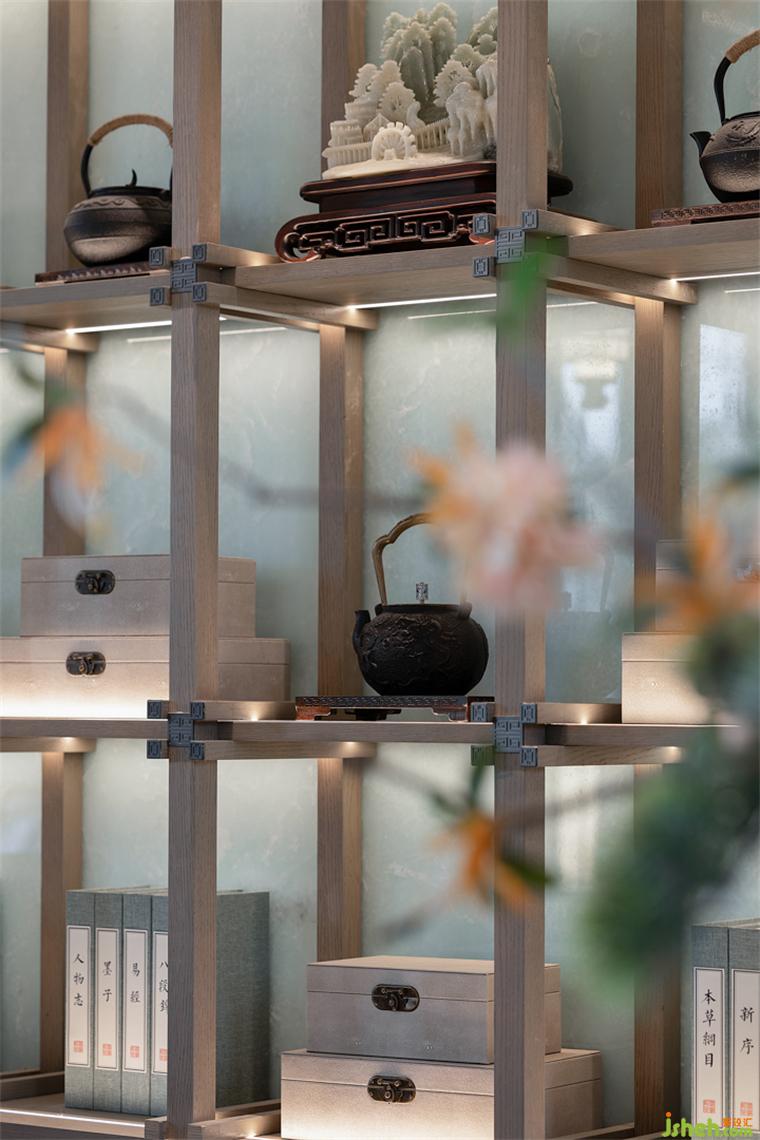 “中為適應(yīng)之謂,庸為經(jīng)久不渝之意”。沙盤區(qū)在傳統(tǒng)的規(guī)矩與均衡中,創(chuàng)造流動的自然之美。透過背后闊景寬窗,材質(zhì)與光影的動態(tài)產(chǎn)生交互,靜是畫,動是景,凝結(jié)出畫面的豐盈意境。