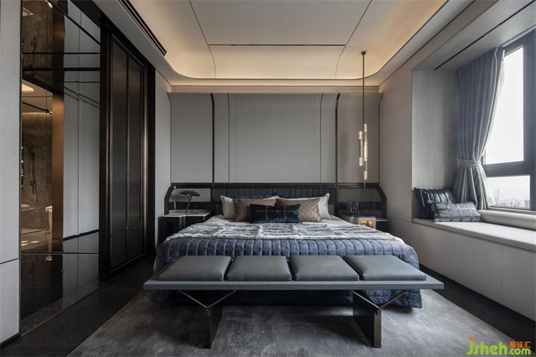 唯有靜心方能感受生活之美。主臥在滿足功能與舒適中盡可能的放大空間尺度及視覺感受。在延續(xù)整體風(fēng)格的基調(diào)之上,融合不同顏色深淺、材質(zhì)、肌理,柔軟的床品與地毯等顯示漸進(jìn)的層級(jí)關(guān)系,佛山樣板房設(shè)計(jì)高級(jí)又帶給人內(nèi)心的寧靜安定。開闊的落地窗讓自然融入室內(nèi),靜謐中透露著高級(jí)質(zhì)感。