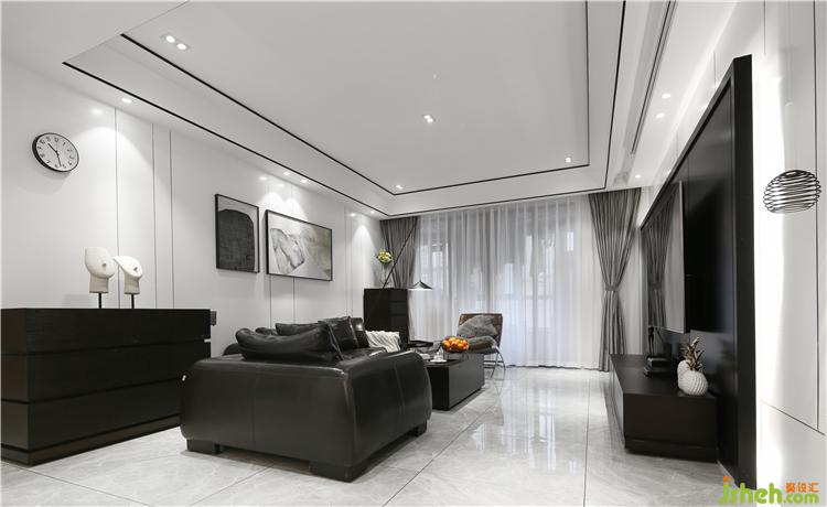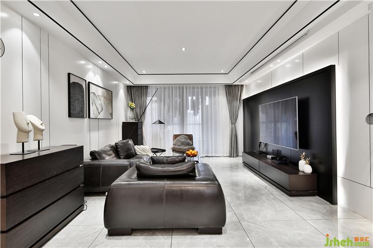 客廳沒有用主燈,用點光源代替,視野更加開闊,沒有壓抑感,空間層次感也會更好。