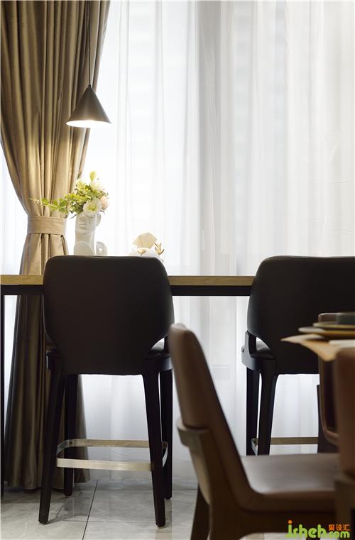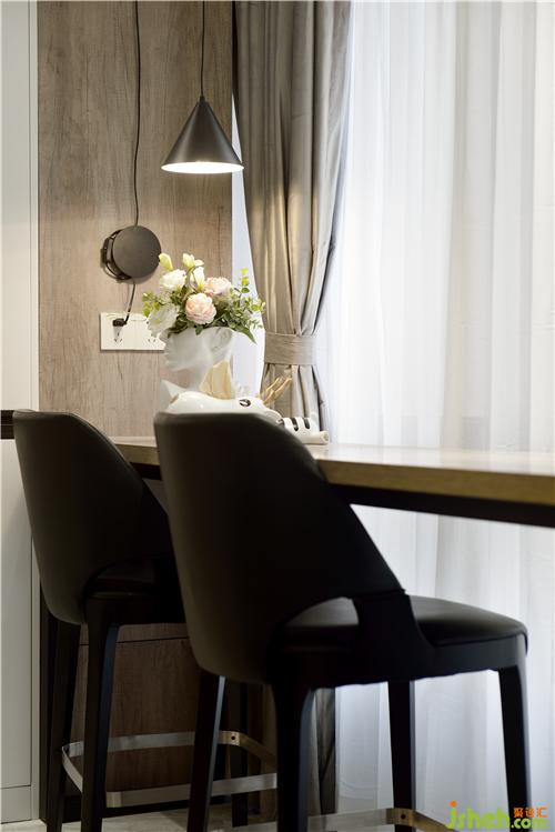 吧臺也在廚房的出門處,這樣業(yè)主在廚房里做飯時,孩子可以在這里寫作業(yè),有學(xué)習上的問題,家長方便指導(dǎo)監(jiān)督,就不用房間廚房的來回跑了。