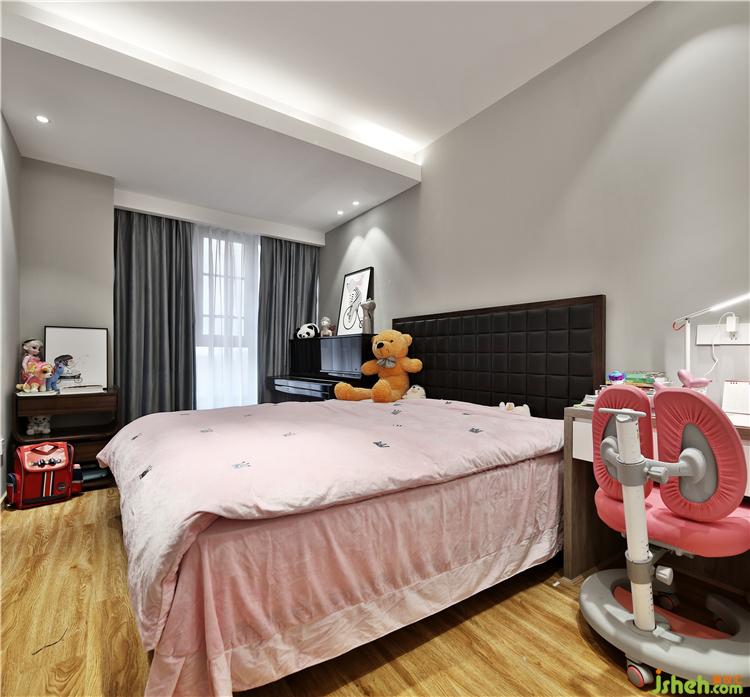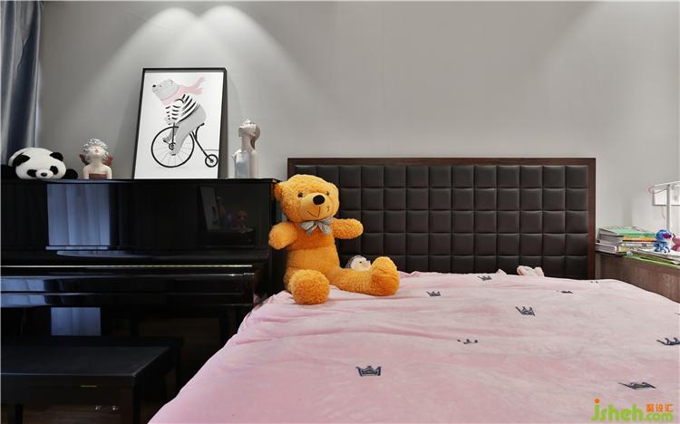 這是業(yè)主寶貝女兒的房間,一位非常漂亮活潑的小姑娘,不僅學習好,還彈得一手好鋼琴。沒有用主燈,以燈帶和點光源的設計起到照明作用。軟裝搭配以粉色少女感為主。