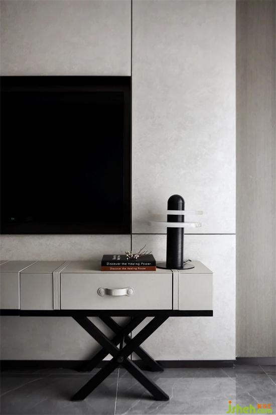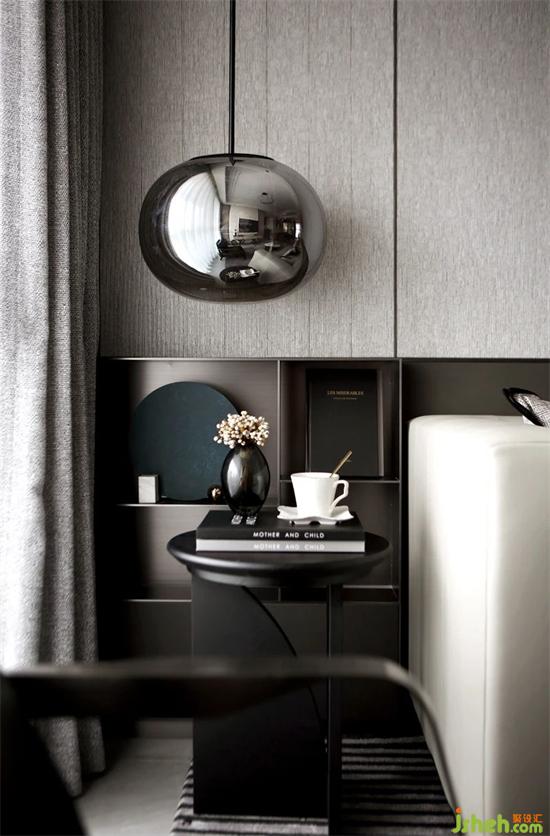 沙發(fā)兩側(cè)以收納架墻體內(nèi)嵌的方式呈現(xiàn),黑銅為柜體主材,橫豎標(biāo)格間自成收納空間,加以同色系的時尚擺件,精致優(yōu)雅空間格調(diào)一一顯現(xiàn)。深圳崗宏融湖居精裝提升樣板房設(shè)計擺件也是經(jīng)過精心篩選而出,傳遞著科技、人文、綠色、再生等新時代的準(zhǔn)則或期盼。為生活場所的每一份用心,都是為了讓愛得以棲居。