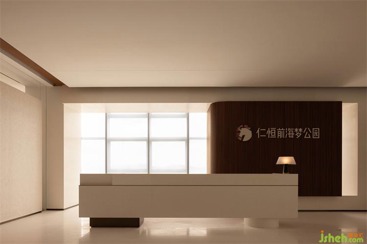 空間位于樓宇19層,整體呈“7”字型,一整個外側(cè)面均為大幅建筑玻璃幕墻,遠眺可達前海之遙。一方面,采光極好,壯美的景色一覽無余,這是其優(yōu)勢所在,另一方面,仁恒前海夢公園售樓處設計提高了室內(nèi)光線控制的難度,考驗塑造空間進深與層次的功力。