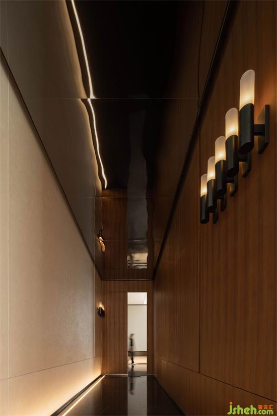 通往VIP室的路徑摒棄了炫目燈帶以及造型,樸實走廊中幾盞壁燈采光,營造日?;目臻g體驗。