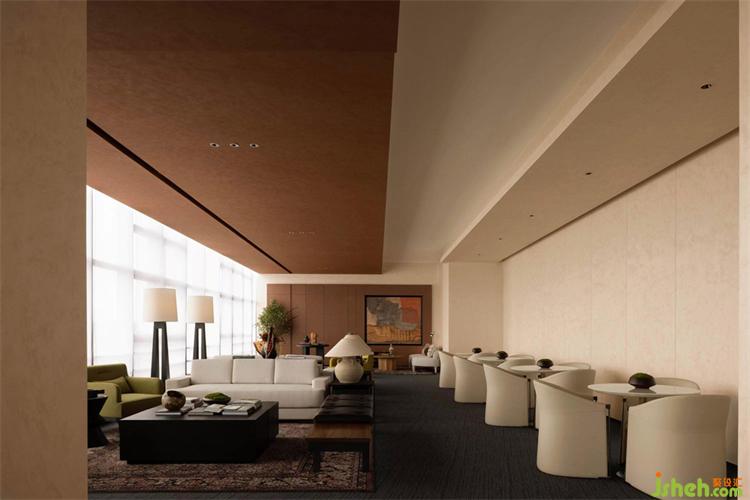 接待區(qū)往左為VIP會客室,往右是活動區(qū),形成了左側(cè)私密空間、右側(cè)公開空間的布局。