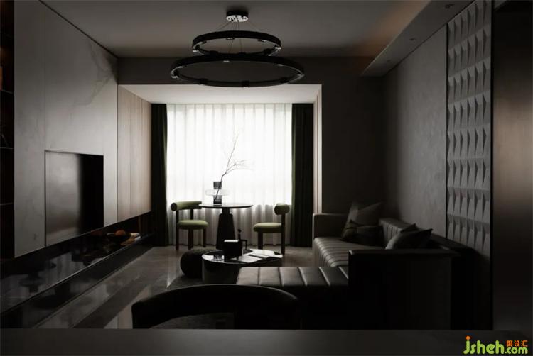 客廳電視背景墻以大塊面的巖板呈現(xiàn),色澤明亮,紋路清晰,底部懸空設(shè)計,豐富空間的層次感。休閑區(qū)也可化作多功能區(qū),中洲青島半島城邦樣板房設(shè)計采用了木飾面,溫潤自然,利用不同材質(zhì)劃分空間,一石一木,相互滲透,展露出靜謐安寧的空間氣質(zhì)。