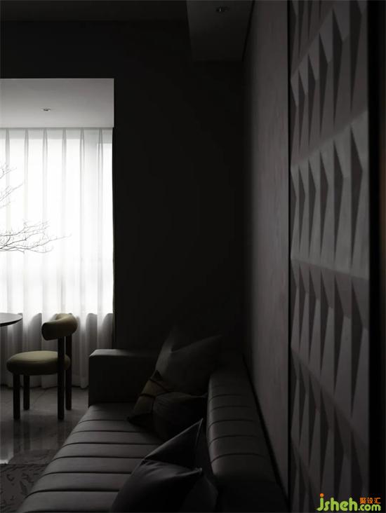 項目以“沐心”為名,運用啞光色、燈光、肌理漆、墻紙、石材與木地板等多元材質(zhì),營造出一種侘寂的氛圍,意在弱化樣板房的商業(yè)屬性,呈現(xiàn)出真實的生活場景,把人的關(guān)注點從直觀的視覺體驗轉(zhuǎn)向內(nèi)在的心理感受,讓心去探索空間。