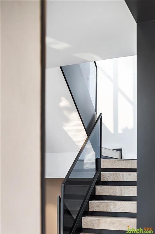 室內(nèi)無(wú)處不在的自然光,讓這座建筑同時(shí)具備了現(xiàn)代、極簡(jiǎn)、舒適的特點(diǎn)。藝術(shù)生活也在其中找到了靈感與平衡點(diǎn)。樓梯的設(shè)計(jì)有透視效果及平衡作用,使用玻璃及石材的搭配既符合視野的需要,又滿足藝術(shù)家的預(yù)期。