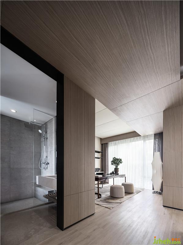 外圍的玻璃幕以及內(nèi)部的大量玻璃材質(zhì)運(yùn)用,在勾勒出各個(gè)區(qū)域結(jié)構(gòu)和線條的同時(shí),保留了空間的整體感,讓人目之所致盡是協(xié)調(diào)與統(tǒng)一之美??蛷d墻壁用原始巖石肌理更突顯了藝術(shù)家對(duì)自然對(duì)原始的渴望。
