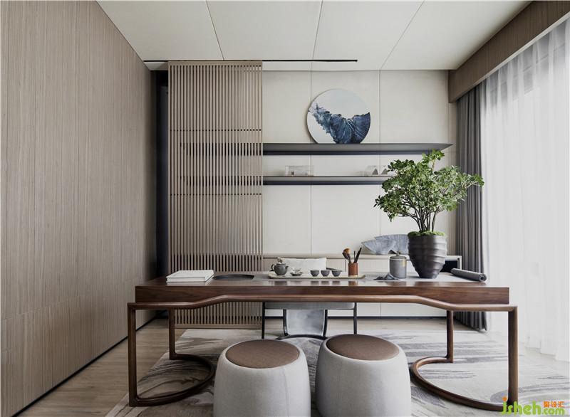 以方形采光井為中軸線,與書畫廳對(duì)望的是會(huì)客廳,兩者的對(duì)稱布置蘊(yùn)含著東方美學(xué)對(duì)空間的構(gòu)建,功能的相互呼應(yīng)也彰顯出“談笑有鴻儒,往來(lái)無(wú)白丁”的高雅遺風(fēng)。在這里,古典與現(xiàn)代的美相互映照、相互融合。