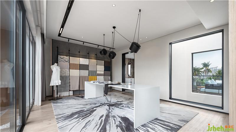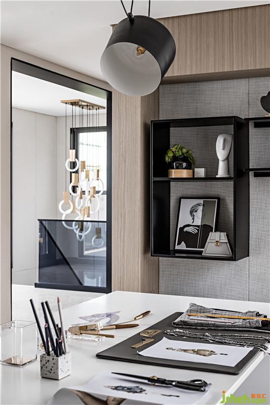 二層工作區(qū)域則通過動線的簡單重構(gòu),分立出工作、展示和休憩三個獨立的功能空間。工作區(qū)沒有過多紛繁復(fù)雜的裝飾,卻通過采光井巧妙地鏡框式設(shè)計,將窗外的景色凝入“畫境”,畫面隨著四季輪回、昏晝更替而變化,折射出的自然之美既是空間中的一抹點睛之筆,也是藝術(shù)家“師法自然”的靈感源泉。