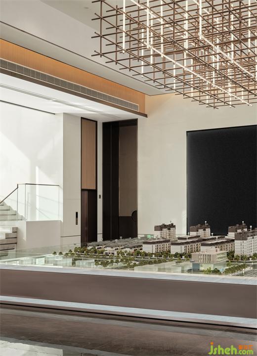 沙盤區(qū)吊燈采用傳統(tǒng)榫卯工藝,將金屬條和燈管穩(wěn)固又優(yōu)雅地連接在一起,當燈光透過榫卯結(jié)構(gòu)散發(fā)出光芒時,整個售樓部都被照亮,堪稱傳統(tǒng)文化與現(xiàn)代藝術(shù)的最佳融合。