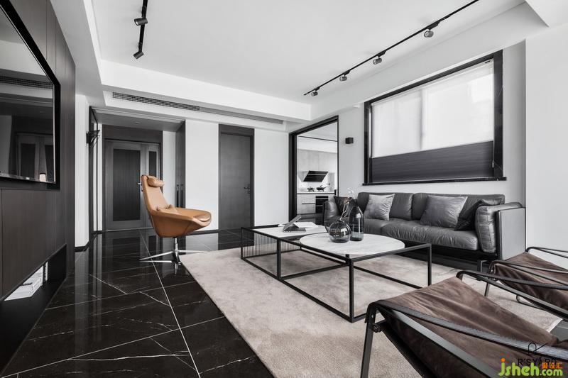 大面積使用黑色,是喜歡出眾、敢于嘗試的人的選擇。明度極低的它容易讓空間晦暗,但如果采光充足,就不是問題。本案客廳有著東、北兩扇窗,充足的光線也讓大面積使用黑色成為了可能。