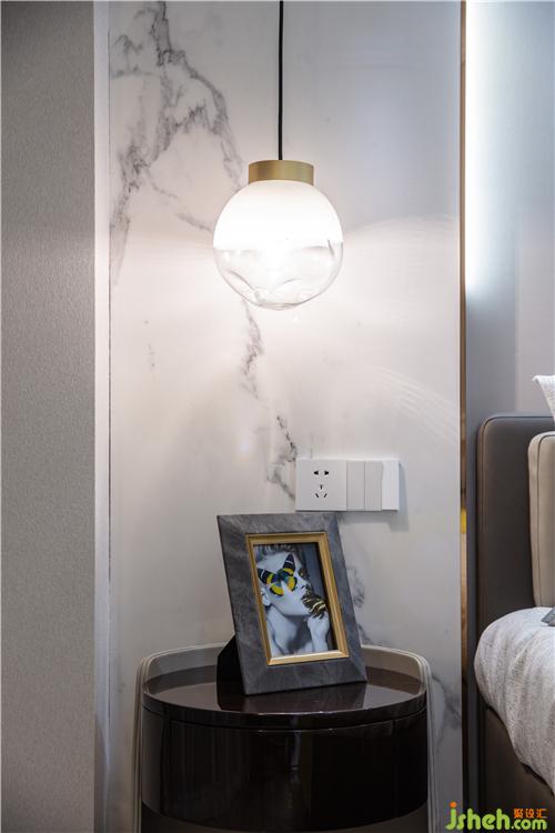 通透的玻璃衣柜,在燈光的照耀下,折射出明亮的光芒,精致與高級(jí)感觸手可及。明朗的大理石、柔軟的床品、具有藝術(shù)魅力的掛畫和擺件,設(shè)計(jì)師以簡(jiǎn)潔有力的設(shè)計(jì)語(yǔ)言構(gòu)建出的一個(gè)隔絕紛擾的寧謐之地。