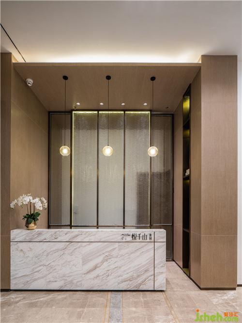 一進門,就被自然的質(zhì)感與溫暖的氛圍所吸引,微暖的燈光灑在爵士白大理石臺面上,簡單而不失大方,臺面后的夾絲玻璃屏風,似一層忽隱忽現(xiàn)的薄霧輕紗,將光影納入又吐出,清美溢于言表,曼妙溫馨于空間中靜靜流淌。