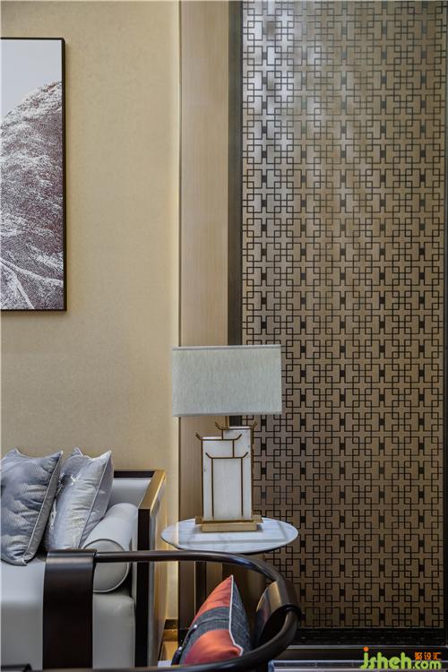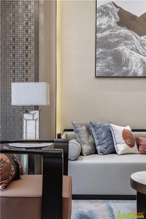 The floor lamps standing beside each group of sofas are like ancient palace lamps, full of cultural charm and sense of ritual.