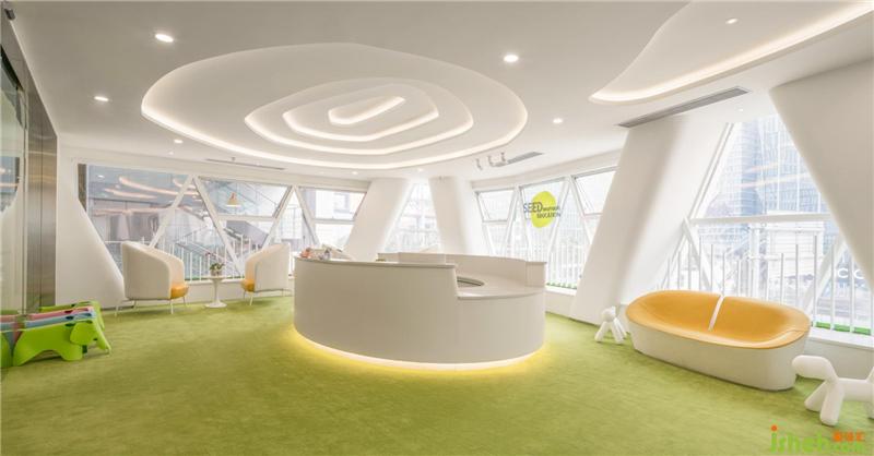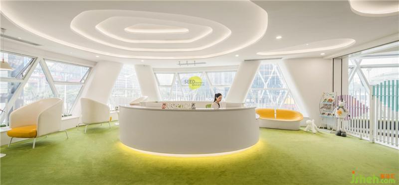 拾“seed”萌芽之意,取logo的“弧”形元素,結合整個建筑外觀的框架,我們結合教育品牌理念希望能提供溫暖舒適輕松自然的空間環(huán)境給每一位小朋友和家長。