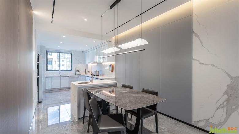 設(shè)計(jì)師采用簡(jiǎn)約明朗的線條,將空間進(jìn)行了合理的分隔。開(kāi)放式的客室內(nèi)設(shè)計(jì)師廳設(shè)計(jì)給人以通透之感,避免視覺(jué)給人帶來(lái)的壓迫感,可緩解業(yè)主工作一天室內(nèi)設(shè)計(jì)師的疲憊。