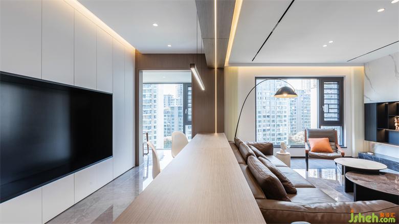 用深色系的木飾面拉遠(yuǎn)視覺(jué)空間,產(chǎn)生很強(qiáng)的室內(nèi)設(shè)計(jì)師縱深感。