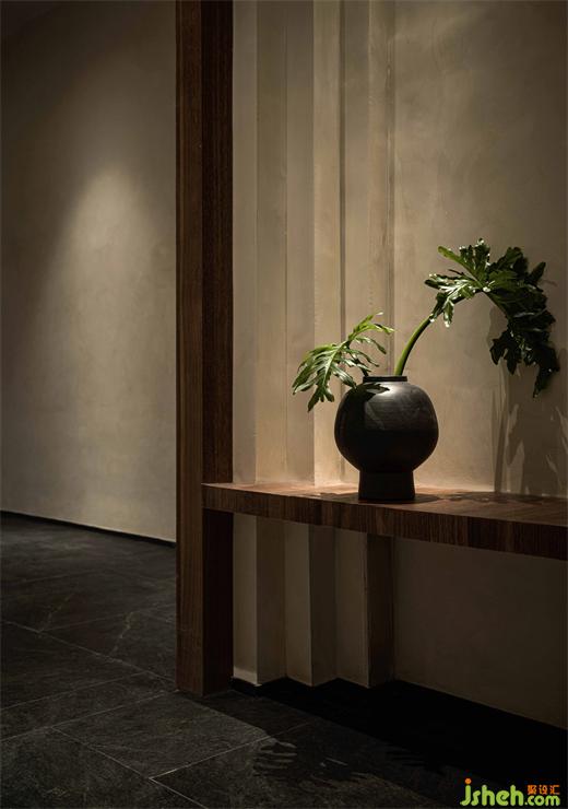 Once you go out of the elevator, the change of emotion starts. The entrance and inner room are departed by an arc wall, and the indent shape seems like hugging people. Using the contrast of light and material and simple and implicit expression make people feel the atmosphere before entering.