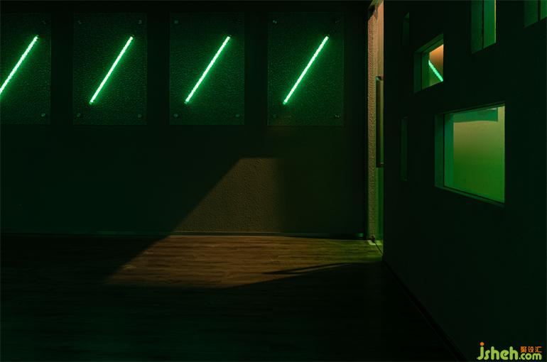 鏤空墻面既創(chuàng)造出一些光影變換帶來的趣味性,街舞工作室設計也給了舞者之間互相觀看和交流的合理距離和視角。我們?yōu)榻淌易隽藘商撞煌臒艄饪刂葡到y(tǒng),以滿足正常教學和視頻拍攝打卡兩種需求。