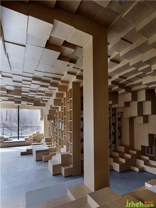 由立方體塊隨機(jī)組合而成的像素風(fēng)景與建筑外部的自然景觀形成視覺圖像的關(guān)聯(lián),起伏流動的外部山水自然地流入建筑內(nèi)部,以別樣的組合方式和獨(dú)特感受讓人們的思緒瞬間的從現(xiàn)實(shí)世界中得以抽離出來,進(jìn)入到意識層面的、抽象的、幾何的和人性化的空間中,體味到時(shí)空流轉(zhuǎn)、由外及內(nèi)地心靈感受的微妙反差,重新構(gòu)筑拓展出全新的心理性的空間體驗(yàn)感受。像素體塊的組合、建構(gòu)與派生,一切都發(fā)生在由立方體構(gòu)成的三維網(wǎng)格中,隨手而變,任心所成。