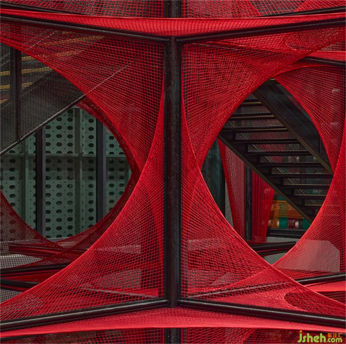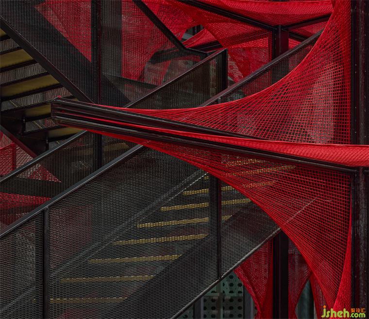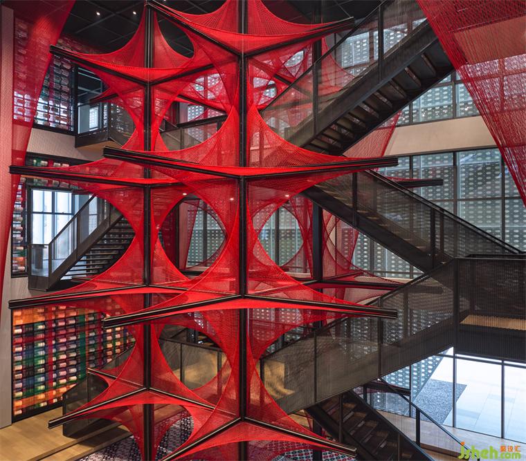 藝術博物館裝修設計在黑色骨骼與紅色血液的虛實相交中,織機上的土家族血脈奔涌而來,生命之火從土壤中開出,“土家之花”綻放——散落在時光深處的原始生命踏入五光十色的商品社會,神采無極、能量畢現(xiàn)。