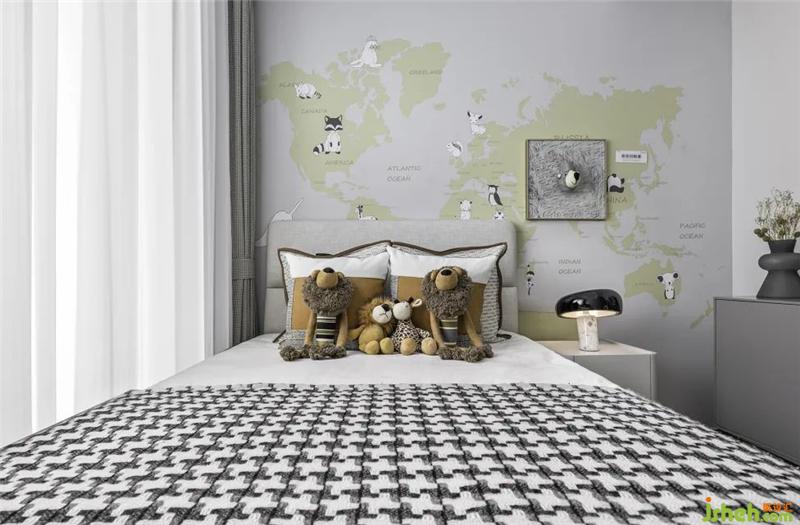女孩房與男孩房的設(shè)計(jì)各具特色,從孩童的性格特征與個(gè)性喜好出發(fā),設(shè)計(jì)師運(yùn)用可愛的云朵波樣板房設(shè)計(jì)點(diǎn)圖案與潮酷的獅子玩偶,塑造個(gè)性鮮明的空間主題,彰顯出豐富充實(shí)的童趣玩味。
