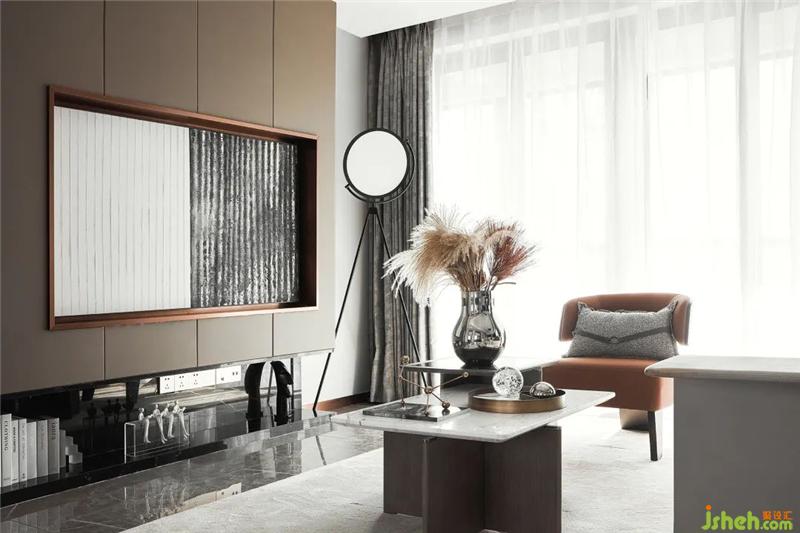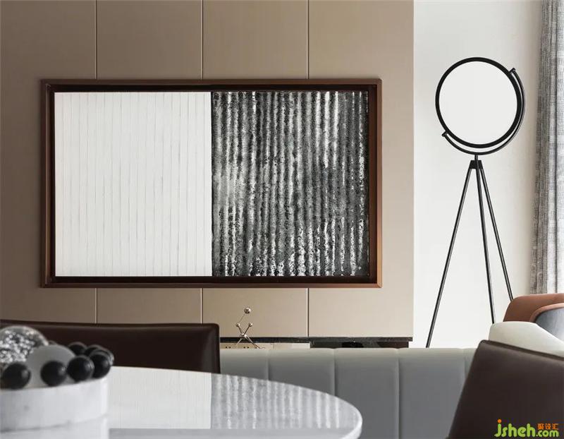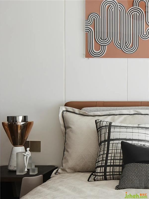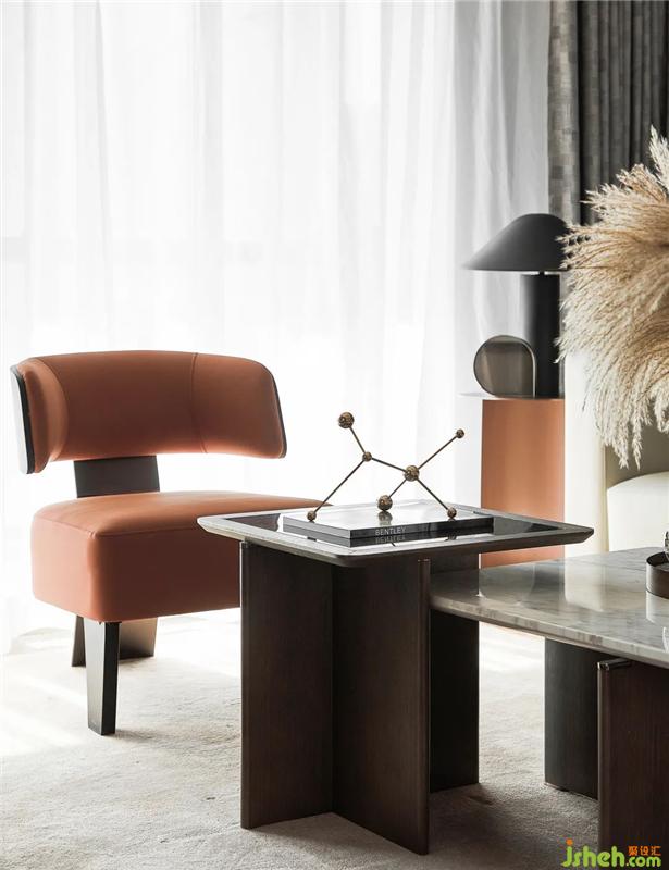 當(dāng)代金屬藝術(shù)擺件、高級雅奢的米白皮革、幾何語素與明亮的橙棕色調(diào),設(shè)計(jì)師以都市的精尚風(fēng)范為核心,將對品質(zhì)生活的深刻解讀運(yùn)用于空間造型中,以不拘一格的藝術(shù)秩序、現(xiàn)代簡約的設(shè)計(jì)語言、精致優(yōu)雅的藝術(shù)細(xì)節(jié),構(gòu)建出一個(gè)具有獨(dú)特魅力的生活空間。