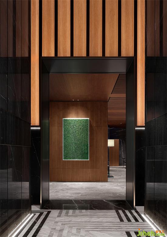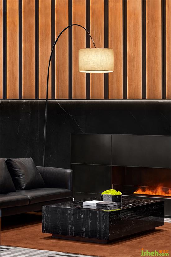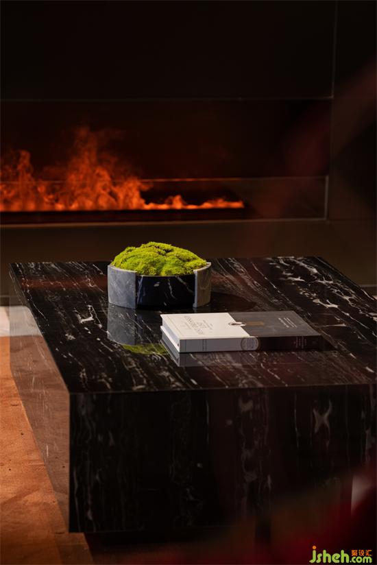 黑色系的墻面與啞光花崗巖、閃耀的燈光、浪漫的壁爐、黑色的真皮沙發(fā),局部點綴跳躍的紅與寶格麗珠寶綠,售樓處設(shè)計以寶格麗酒店的設(shè)計元素與理念精華,呈現(xiàn)意式生活的精致與優(yōu)雅。