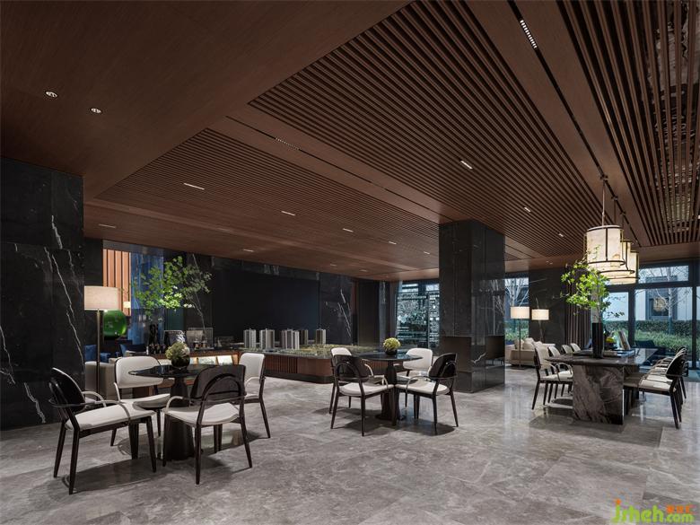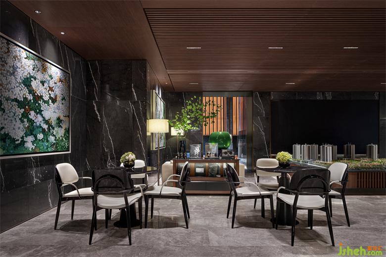 大堂極好的采光下,當(dāng)陽(yáng)光溫柔地灑入室內(nèi),作為大門的玻璃幕墻變成了畫框,圈售樓處設(shè)計(jì)出室外景觀的綠意盎然,與散布于空間內(nèi)的藝術(shù)裝飾品形成無(wú)聲的自然對(duì)白。