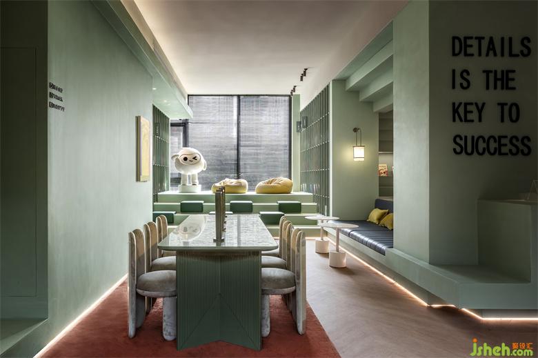 馬卡龍綠的主色調(diào),質(zhì)感天然的木材與大理石,搭配輪廓圓潤的家具、溫柔舒適的地毯與抱枕,售樓處設(shè)計以“綠野仙蹤”為設(shè)計主題,讓人在進(jìn)入的剎那,全身心都舒展松沉,在清新靜謐的氛圍里,沉浸于文字世界的浪漫與智慧。