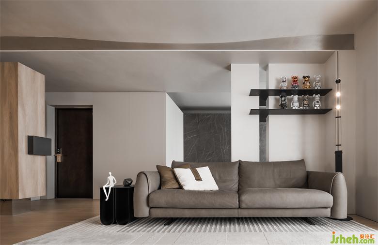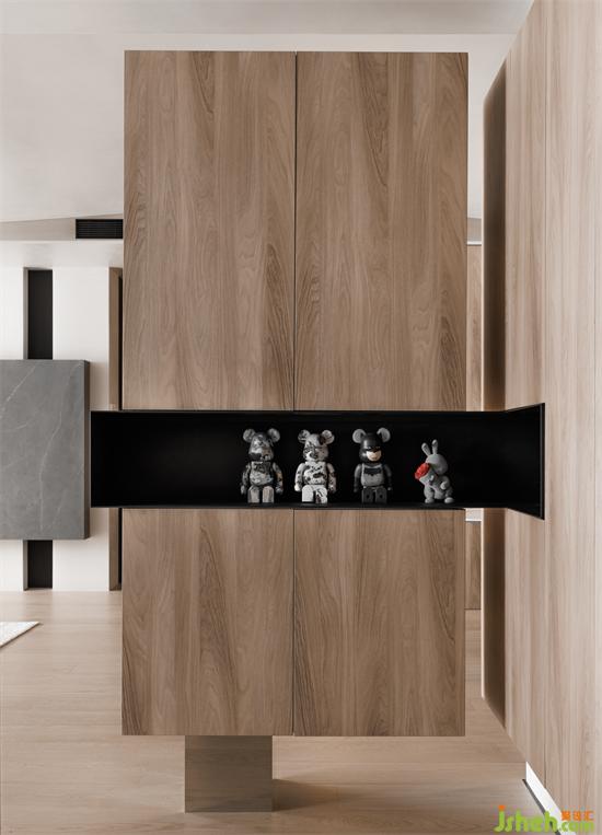 客廳與書房的隔墻中間留有一條縫隙,上設(shè)鋼板連接至?xí)?,讓兩個空間有了互動,鋼板上也能放一些業(yè)主收藏的潮玩手辦,一舉兩得。